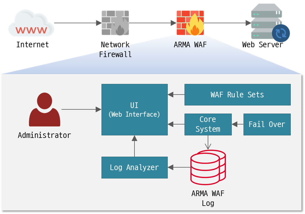 ARMA is designed to provide the best products for user-friendly, providing security functions through log-linking and log analysis of other security equipment, and protecting customer’s web service with strong rule set.