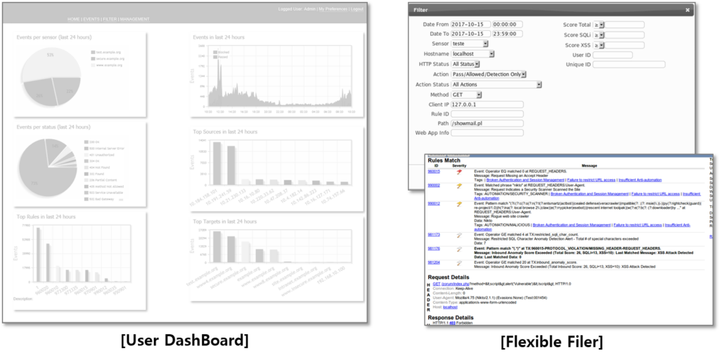 – Provides report generation function including network firewall, ARMA WAF, HTTP request / response, and network packet analysis result