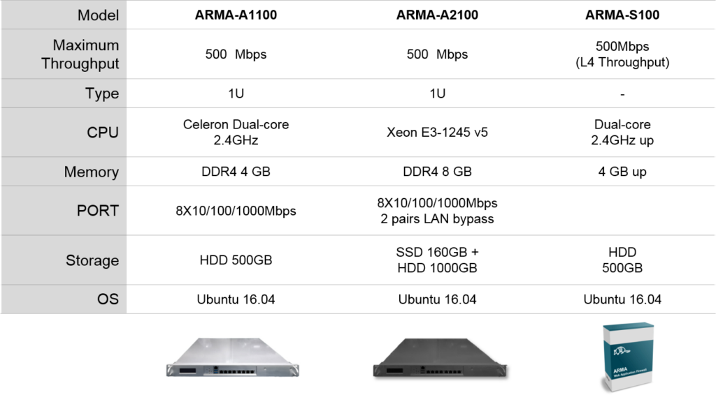ARMA WAF is a web appliance that detects and blocks attacks from external hacking and web application vulnerabilities without degrading performance of each web server.